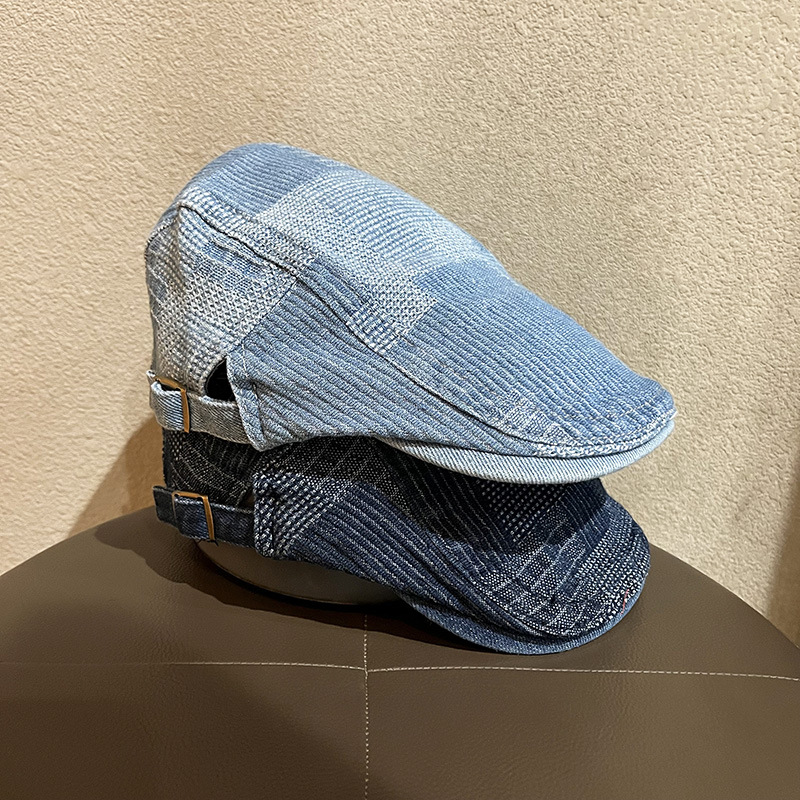 港の風の潮流の復古的な水洗いのデニムの前進の帽子の四季は格子の女性の街頭の短い軒のベレーの帽子の男を合わせます