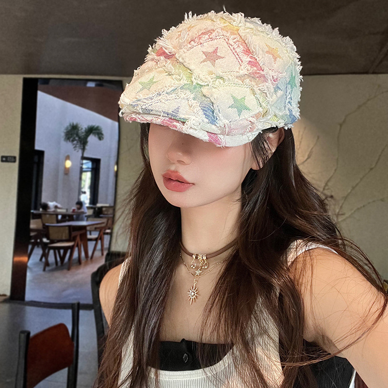 日系文芸復古虹は前進帽をすりむいて子供のファッションに合わせて星のアヒルの舌の帽子に顔を見せます。