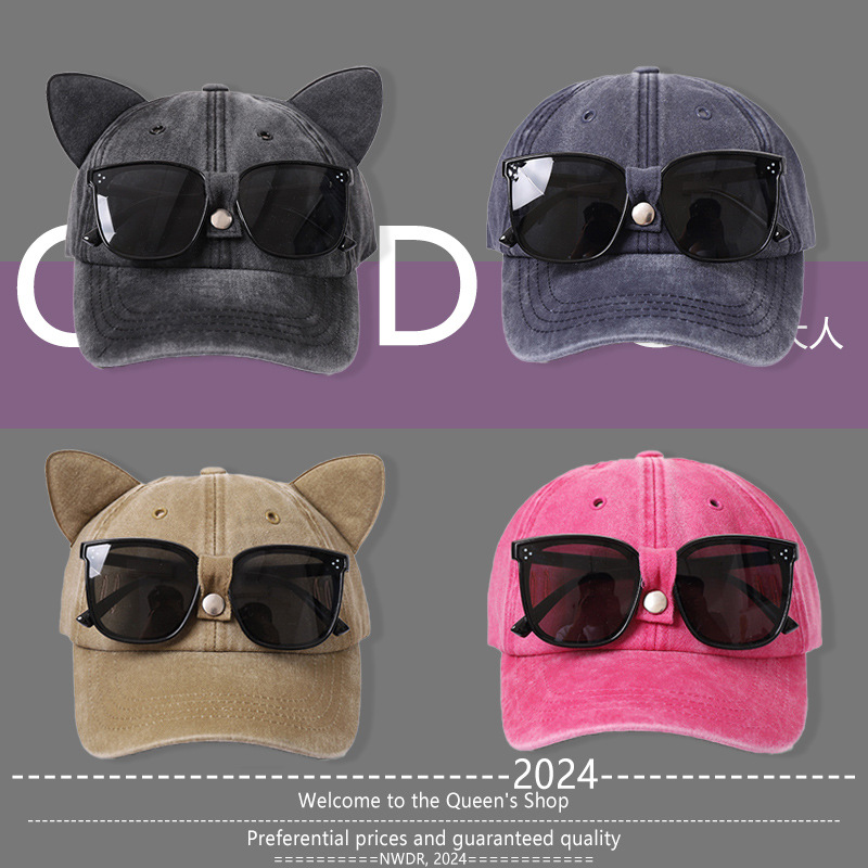 オリジナルファッショナブルなかわいい猫耳多用途野球帽女性用韓国版ショッピングサンシェードサングラスひさしキャップで顔が小さく見える