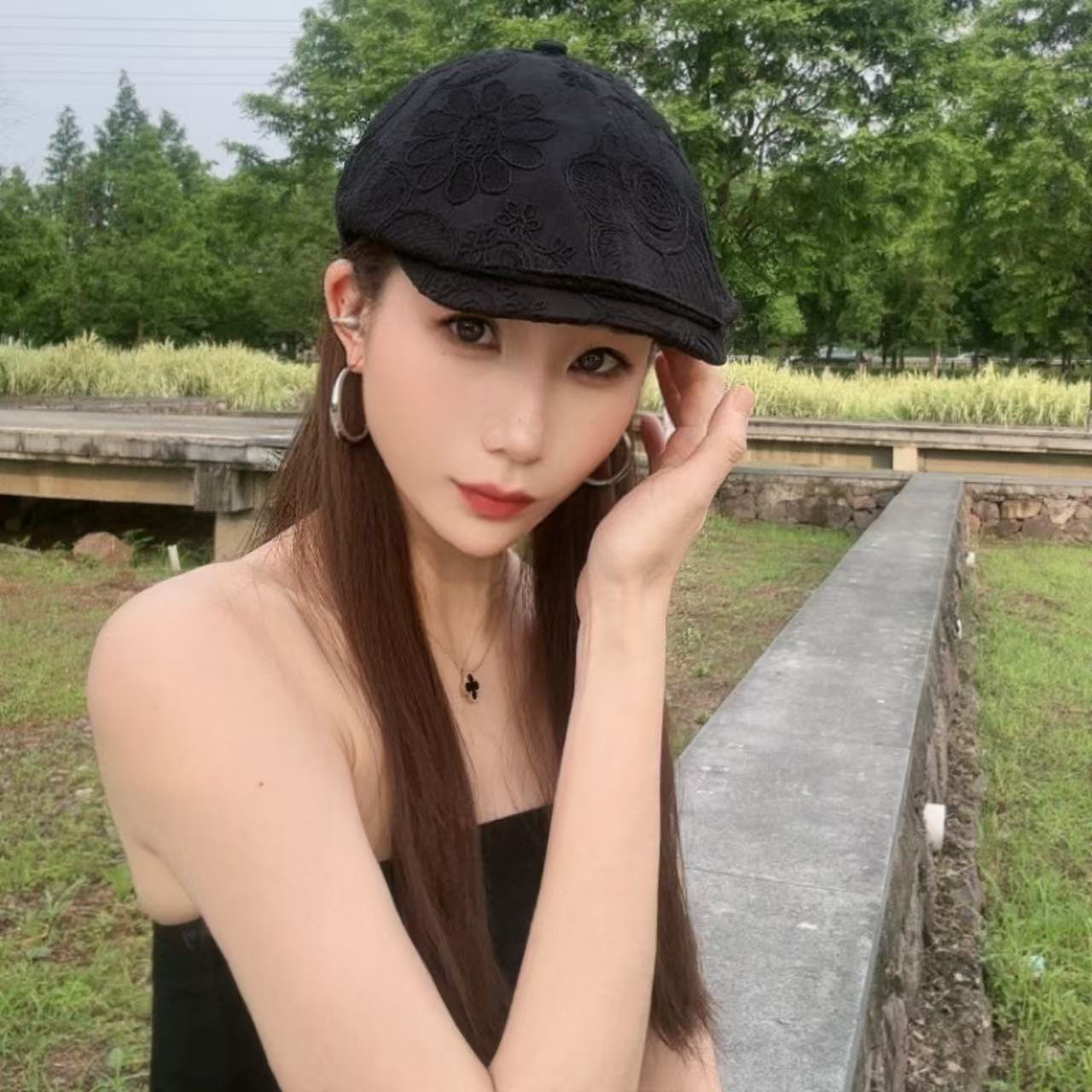 通気性の薄い刺繍入りフラワーフロントハット女性用春と夏の新しいレトロな多用途の顔が見える小さなアヒルの舌ベレー帽