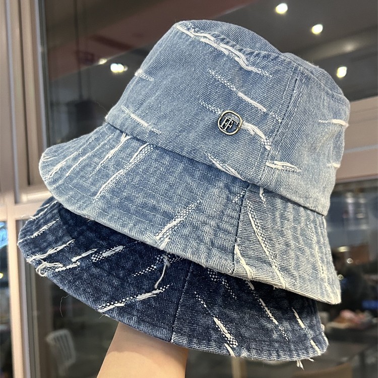日本のレトロなダメージ加工デニムフィッシャーマンハット、男性と女性用、春と夏の多用途の顔見せ小さな盆地帽子、旅行用日焼け止めサンハット