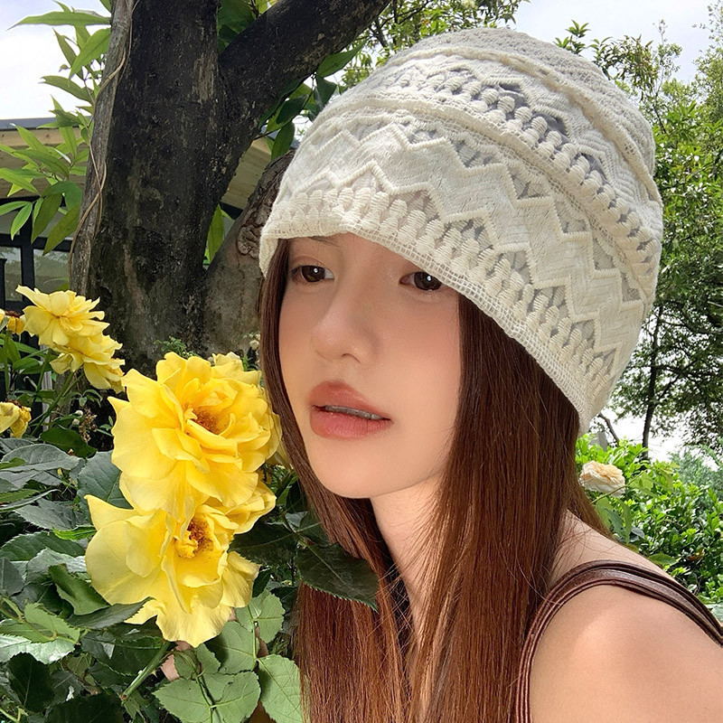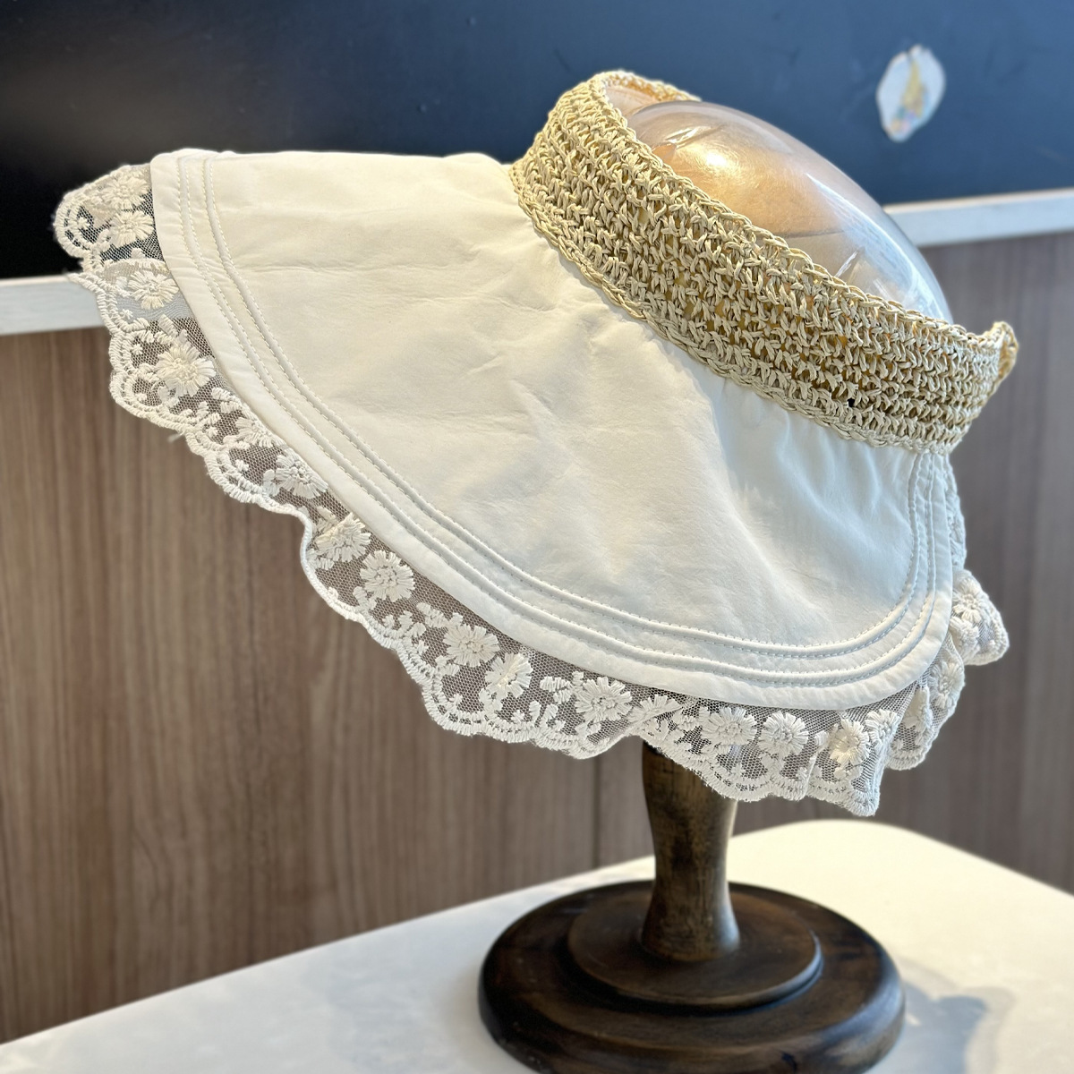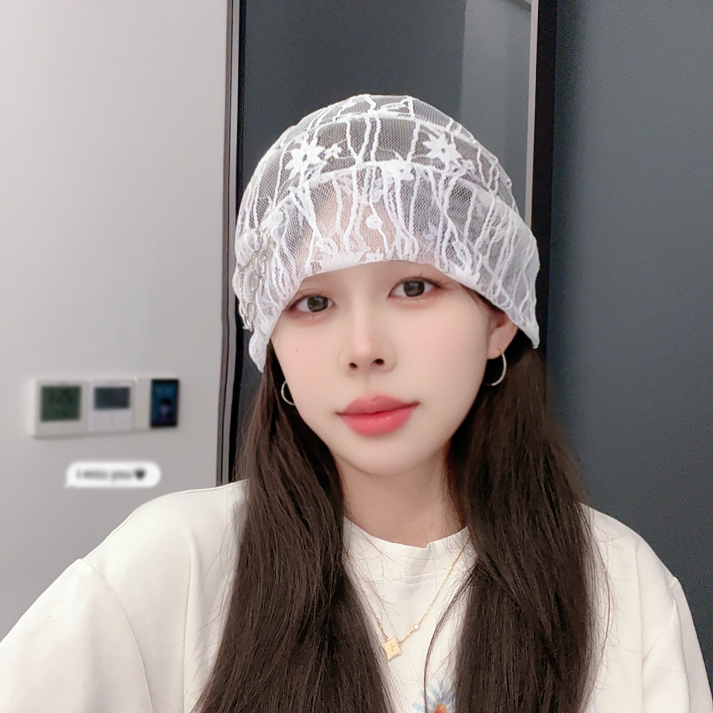 韓国スタイルの春と夏のサンハット、牧歌的なスタイルのレースフラワーメッシュパイルハット、女性用薄いレトロニッチ気質包頭帽子