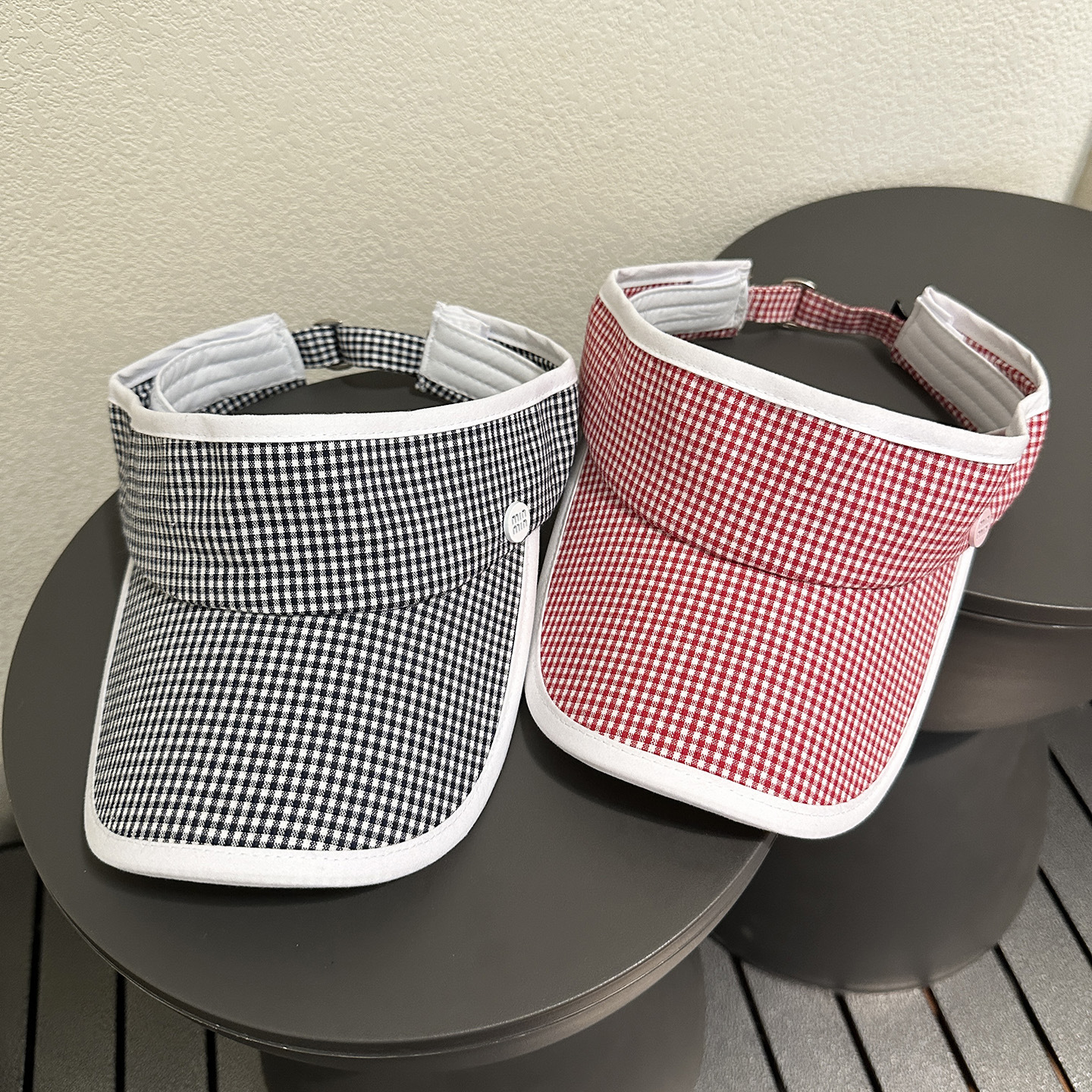 韓国のシンプルなチェック柄のアヒルの舌中空帽子、女性用、夏の外出、日焼け止め、スポーツ、ランニング、顔が見える、小さくてトレンディ、ポニーテールに結ぶことができます。
