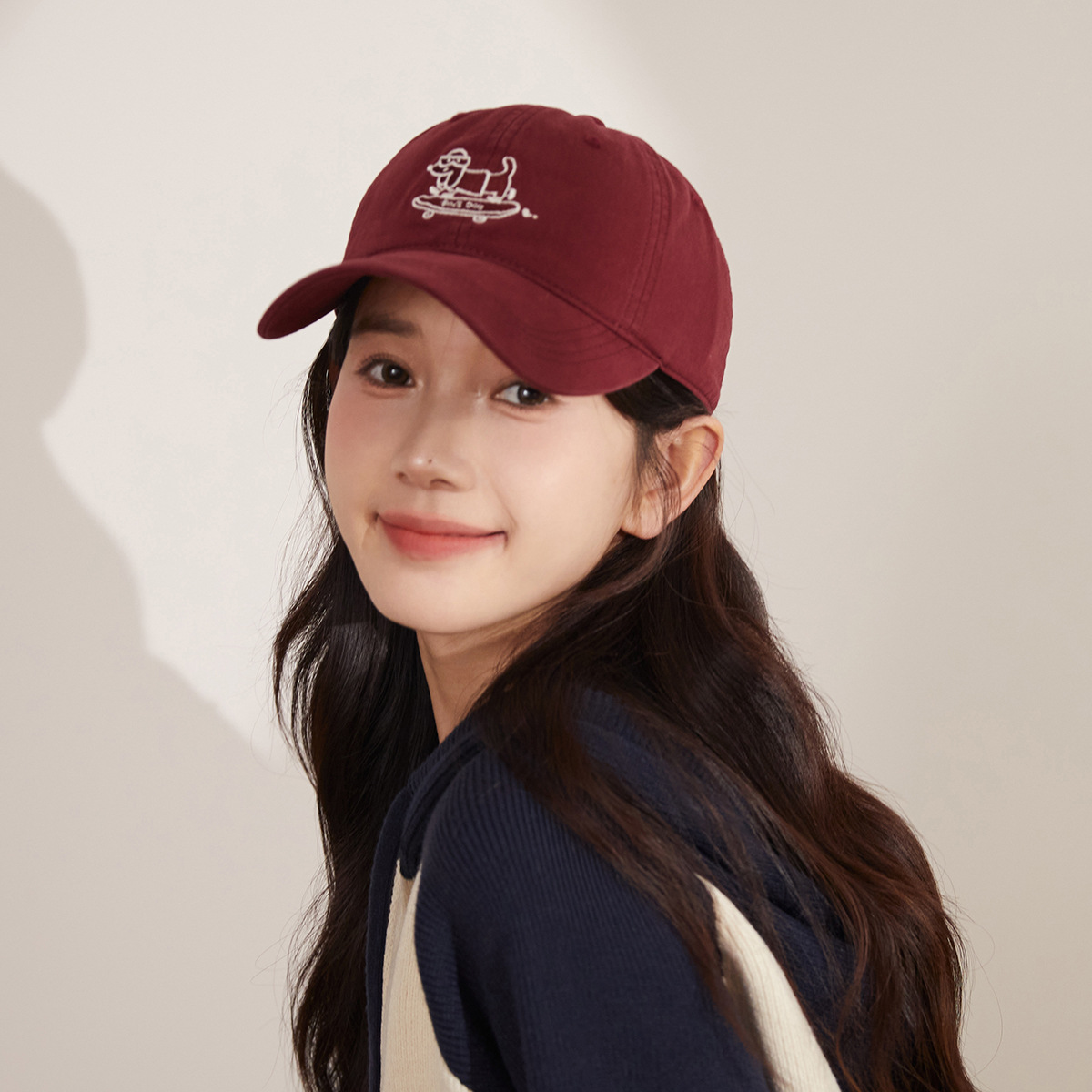 スケートボード子犬刺繍野球帽女性の日本製春と夏のソフトトップ帽子ファッショナブルなカーブつばディープトップサンバイザーキャップ