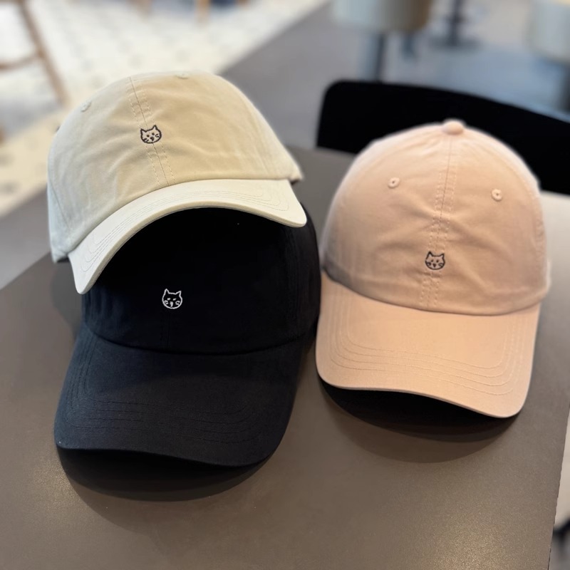 甘くてかわいい小さな猫の頭の刺繍入り大きな頭囲の野球帽、女性用、春と夏の新しいスタイル、男性用の小さなつばの広いひさし付きキャップ