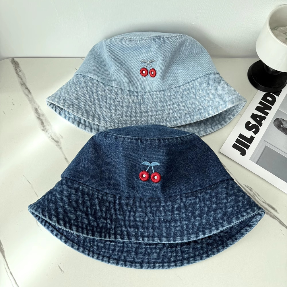 リトルチェリーデニムフィッシャーマンハットレディース夏の日焼け止め多用途顔見せ小さな盆地帽子春バケツ帽子 2025