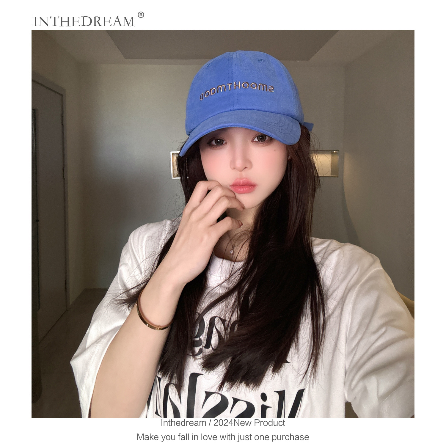 レター刺繍クラインブルー野球帽女性用 2025 春新作韓国風小顔帽子大きな頭囲ひさしキャップ