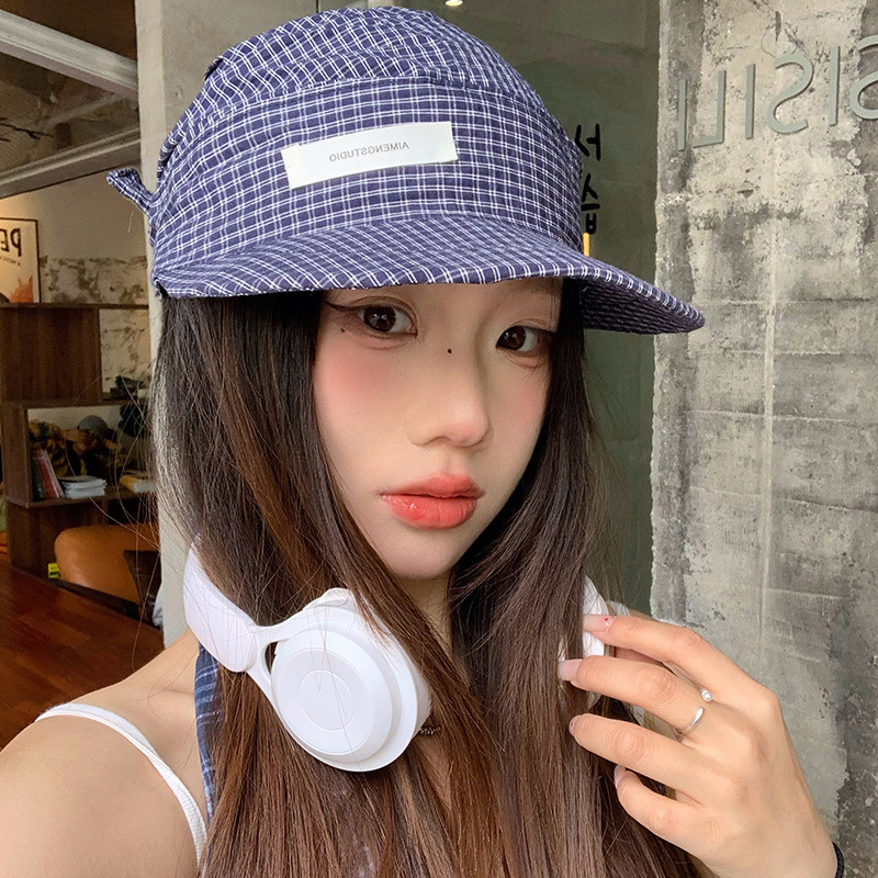 日本のレトロな格子縞のスカーフの帽子の女性の夏の薄いモデルの百合の顔のアヒルの舌の帽子の日よけの日焼け止めの野球帽