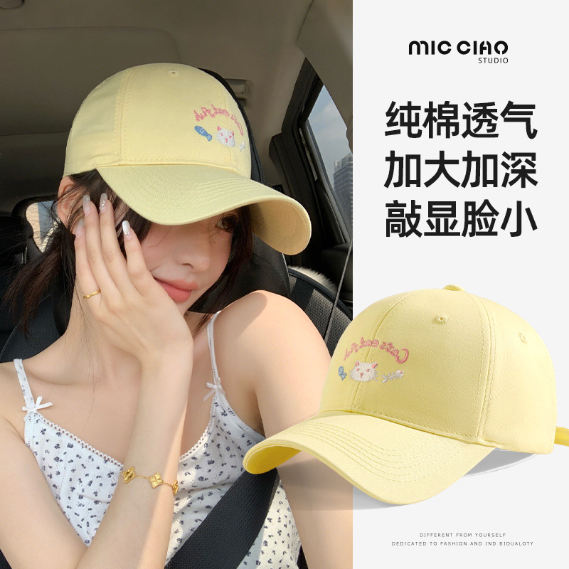 黄色の野球帽の女性の韓国版百合2025の新型のひさしの刺繍のアヒルの舌の帽子の深い頂は顔の小さい帽子の男を現します。