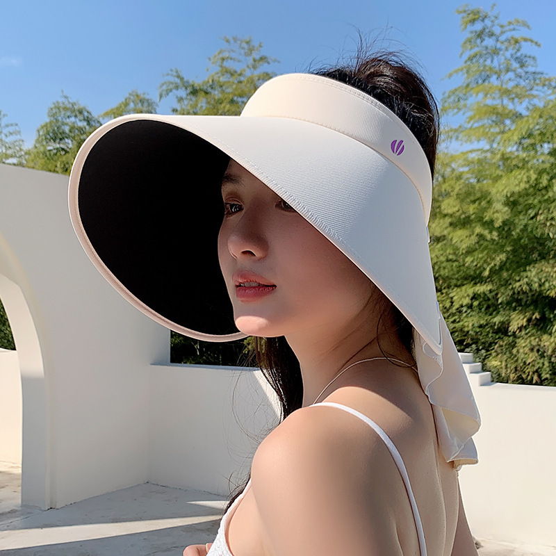夏の顔全体の日焼け止め黒ゴムの空の帽子の女性の軒は顔の小さい紫外線防止の日よけの帽子の海辺の休暇を現します。