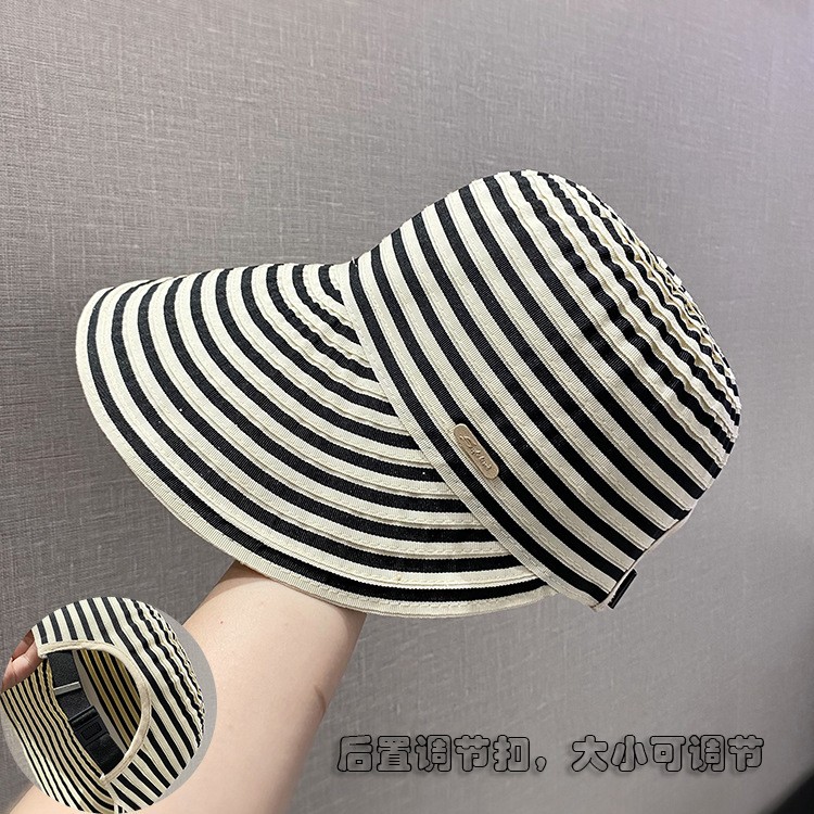 韓国風ストライプ折りたたみ式つば広ひさしキャップ、女性用、顔が小さい、多用途、顔が小さい、女性用アウトドアカジュアルサンハット