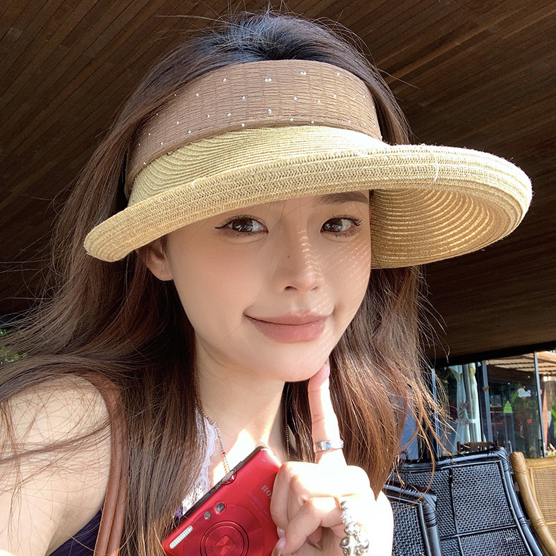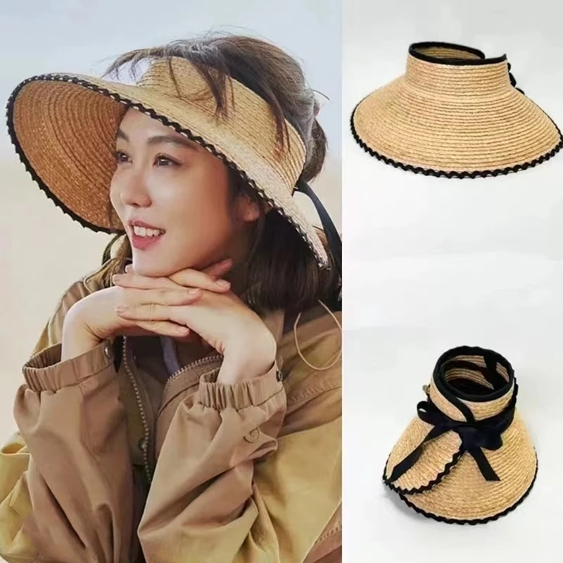 2025新型の空頂の日よけの帽子の女性の日よけの大きなつばの漁師の帽子の夏の屋外の帽子は自転車で太陽の帽子をつなぎ合わせます。