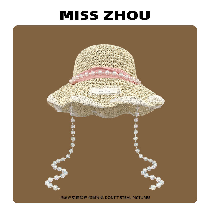 フランスの水晶はレースの辺の麦わら帽子の女性の夏の休暇の大きい軒の海辺の砂浜の日よけの日焼け止めの日よけの太陽の帽子の潮を持ちます。