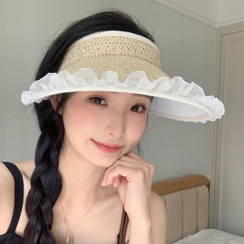 韓国の新型レースの空のトップの日焼け止め帽子の女性の夏の大きい軒は顔の小さい黒いゴムを現して紫外線の日よけの帽子を防ぎます。