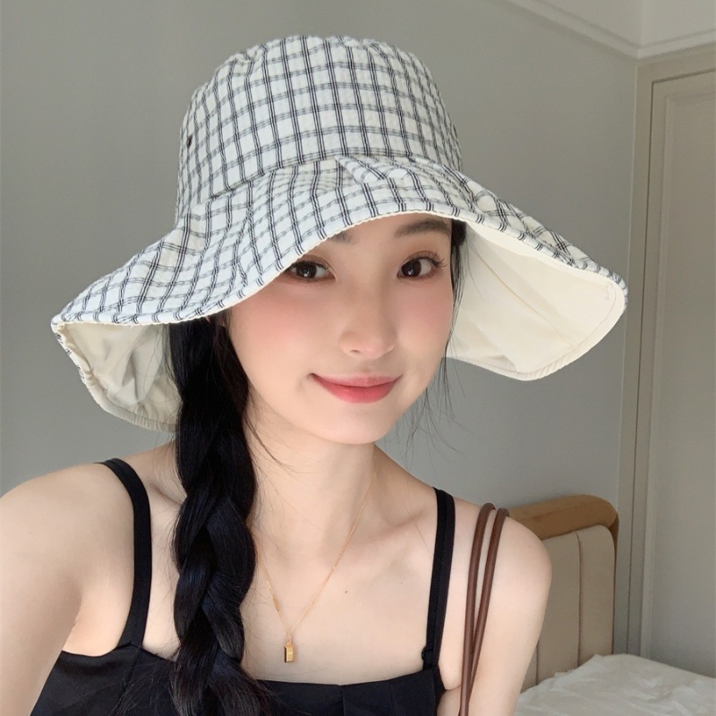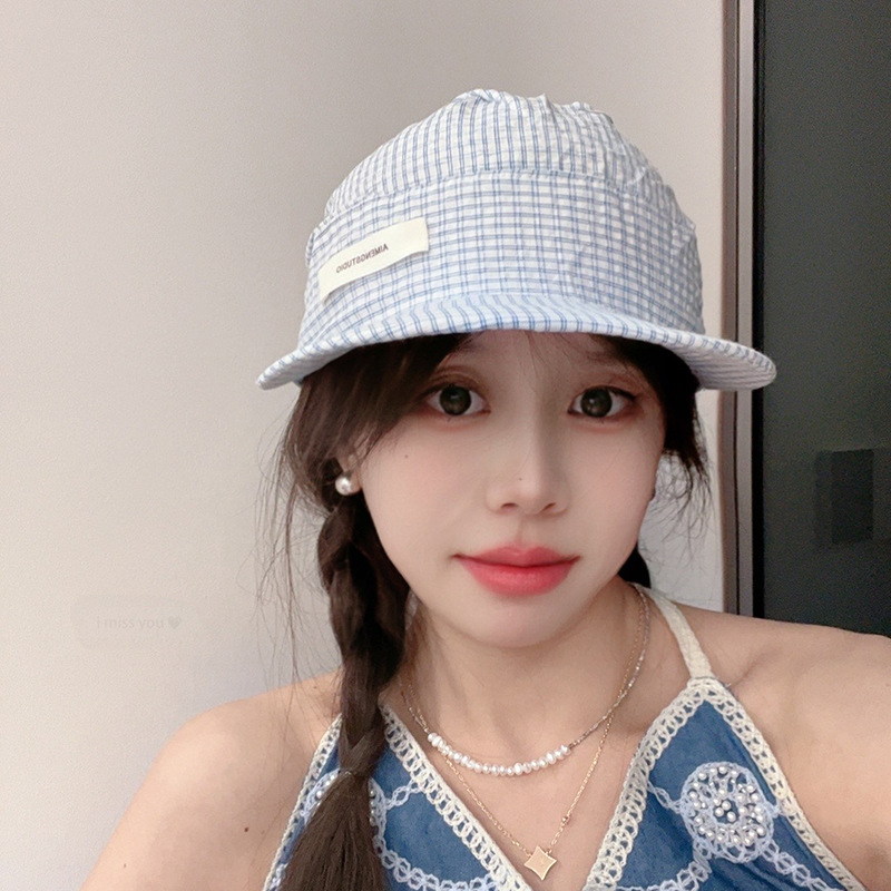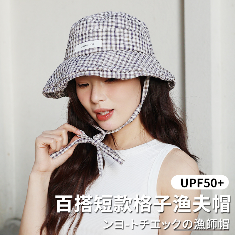 日系格子巻き取り漁師帽女性夏の新型軒速乾日よけ日焼け止め帽ファッション顔小盆帽