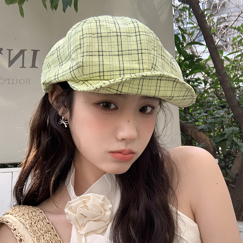 レトロな格子の雲のベレー帽の女性2025年の春の新型の顔の小さい画家の帽子の大きい頭の周りの八角の帽子の潮