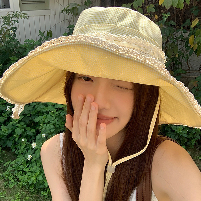 日本の格子の巻き取りの漁師の帽子の女性の夏の薄いモデルの大きい軒の清新な日よけの帽子