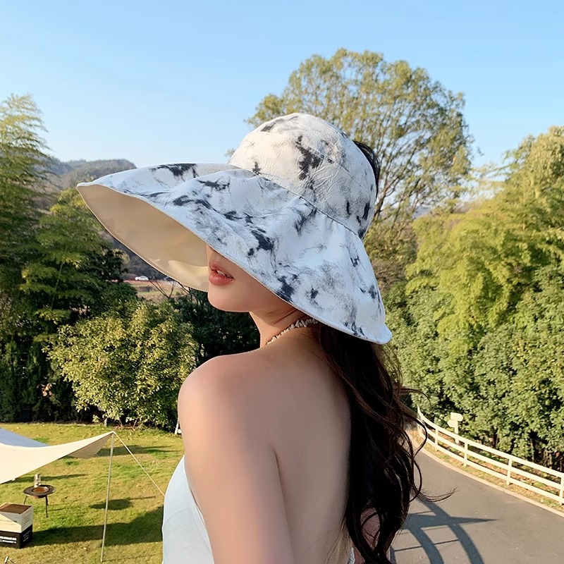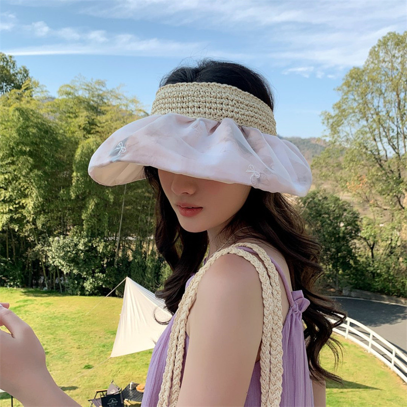 春夏新作韓国版水墨画蝶結びの空のトップの貝殻の帽子の女性の大きい軒は顔の小さい日よけの日よけの太陽の帽子を現します。