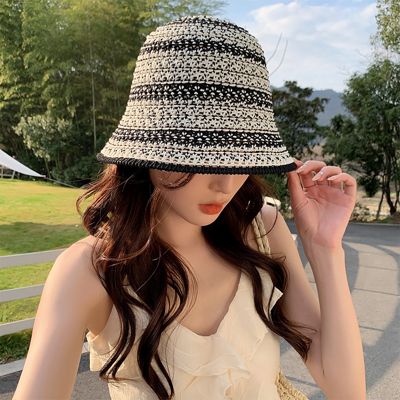 日よけ透かし編み漁師帽子供2025新型バケツ帽ins文芸薄手通気鉤針盆帽
