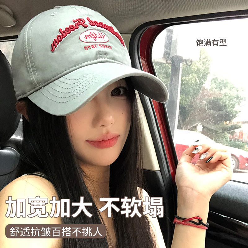 アメリカ式アルファベット刺繍グレー野球帽女性秋冬新作ワイド帽子つばの大きい顔が顔を見せています。