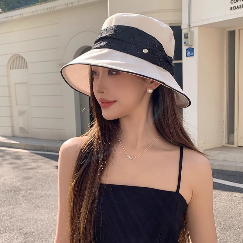 日本式の夏の新型の帽子の女性の日よけの日焼け止めの漁師の帽子のファッション的な純色の百合の盆の帽子は顔の小さい太陽の帽子を現します。