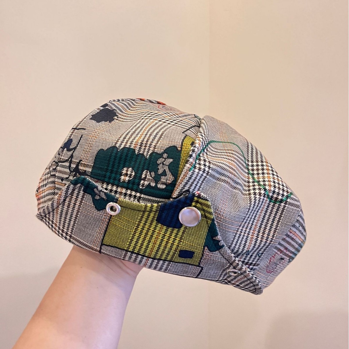 2025 新レトロチェック柄落書きベレー帽女性の日本英国ニッチ画家帽子文学八角形帽子トレンディ