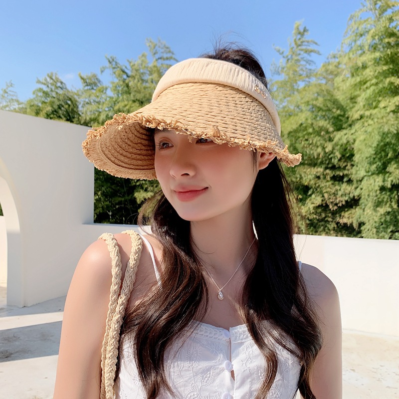 草編みの空の帽子の女性2025新型の夏の海辺の日よけの麦わら帽子は紫外線の砂浜の日よけの太陽の帽子を防ぎます。