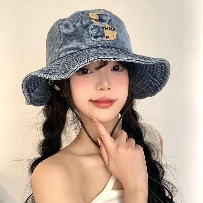 リトルベア ウォッシュドデニム フィッシャーマンハット レディース 春夏 大きなつば 日よけ バケツハット 大きな頭囲 小さな帽子