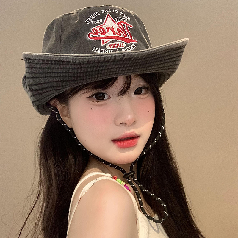 レトロな文字刺繍西部カウボーイ帽女性屋外日焼け止め登山帽の大きなつばに漁師の帽子がついている