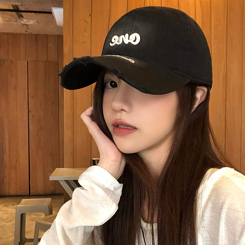 韓国系の甘いクールな黒い穴が開いているカウボーイの野球帽の女性2025新型のファッションの大きい頭の周りの広いつばのアヒルの舌の帽子の男
