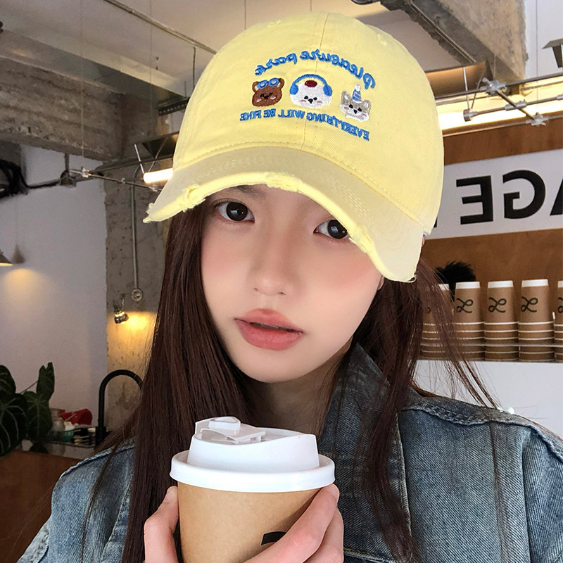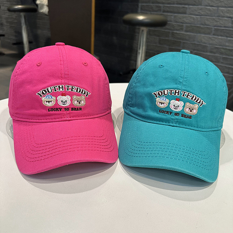 2025春の新型アニメ刺繍熊野球帽女性ソフトトップ日常シンプルな顔のアヒルの舌帽