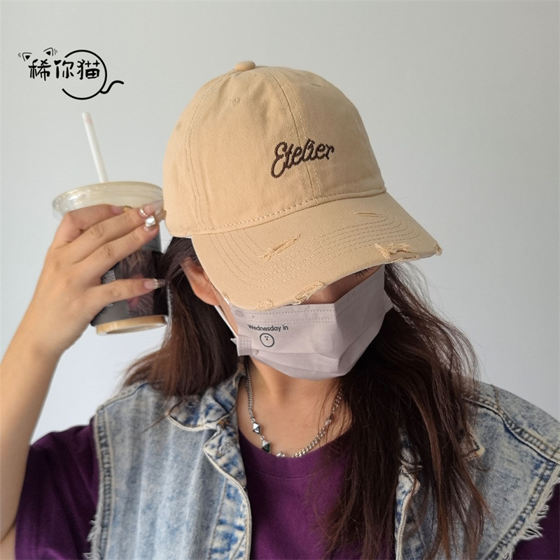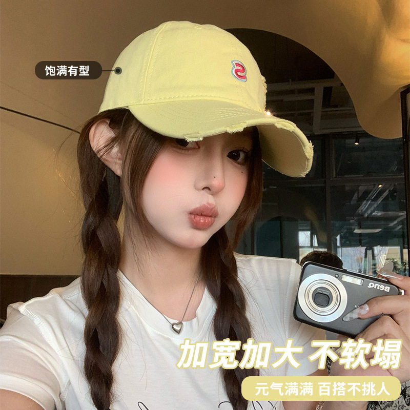 2024新型四季カップル韓国版破れ穴刺繍ソフトトップ野球帽の広いつばの大きな頭にアヒルの舌帽を囲む