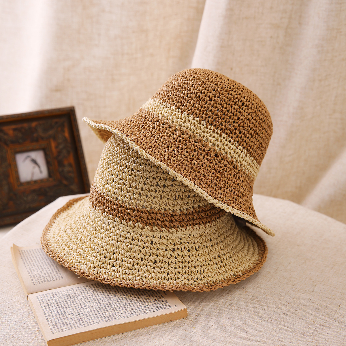 2025夏の新型帽子の女性の日よけは透かし彫りの砂浜の漁師の帽子の屋外で旅行します。