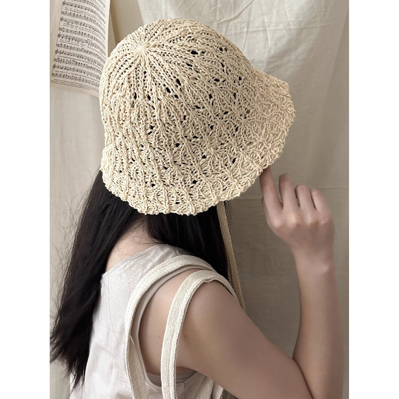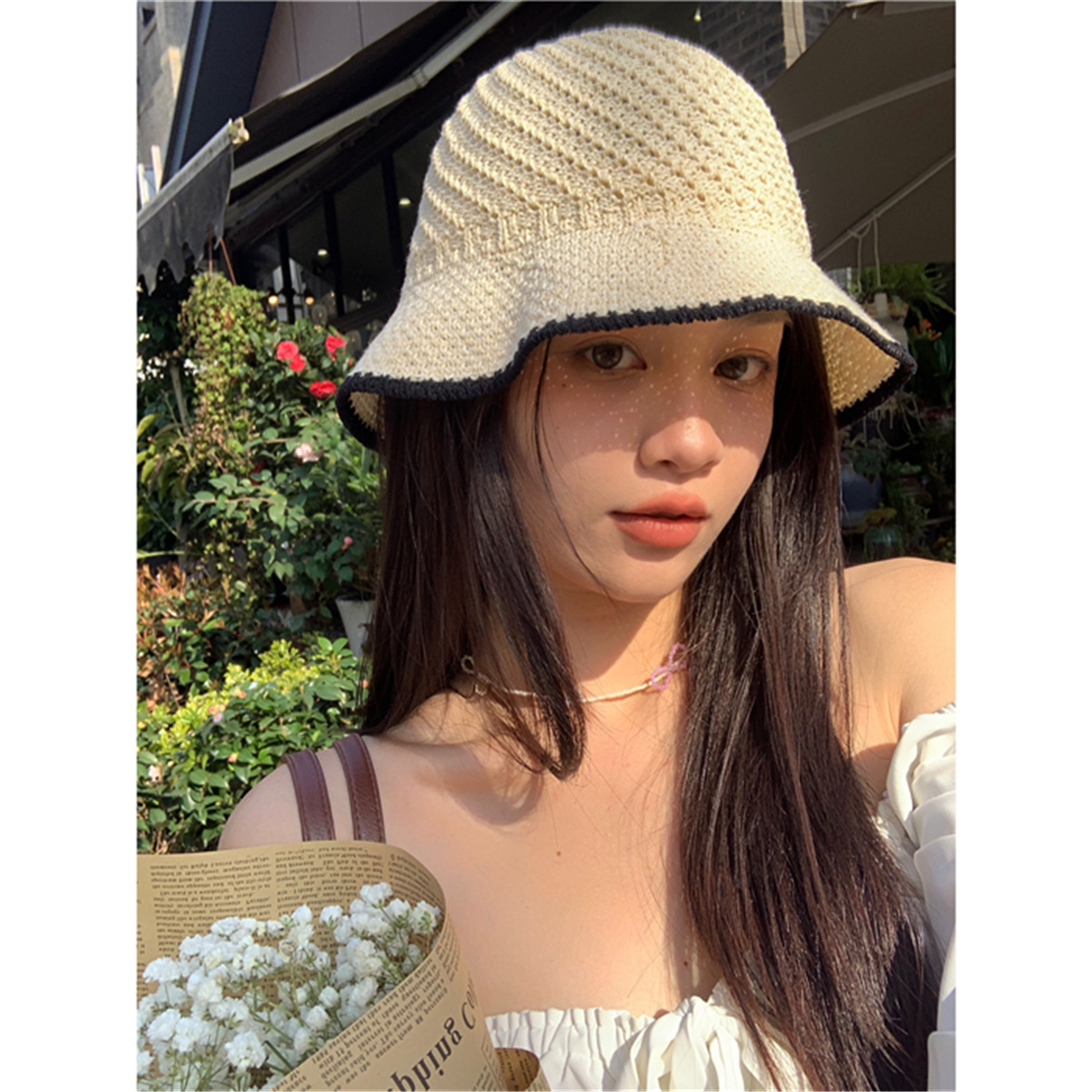 日系レトロニット漁師帽女性春夏透かし透け通気盆帽気質百合顔小バケツ帽ins