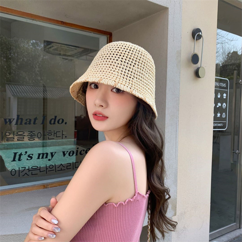上品な雰囲気のins風の通気性の透かし彫りのニットの綿の線の漁師の帽子の女性の夏は顔の小さい軒の盆を現します。