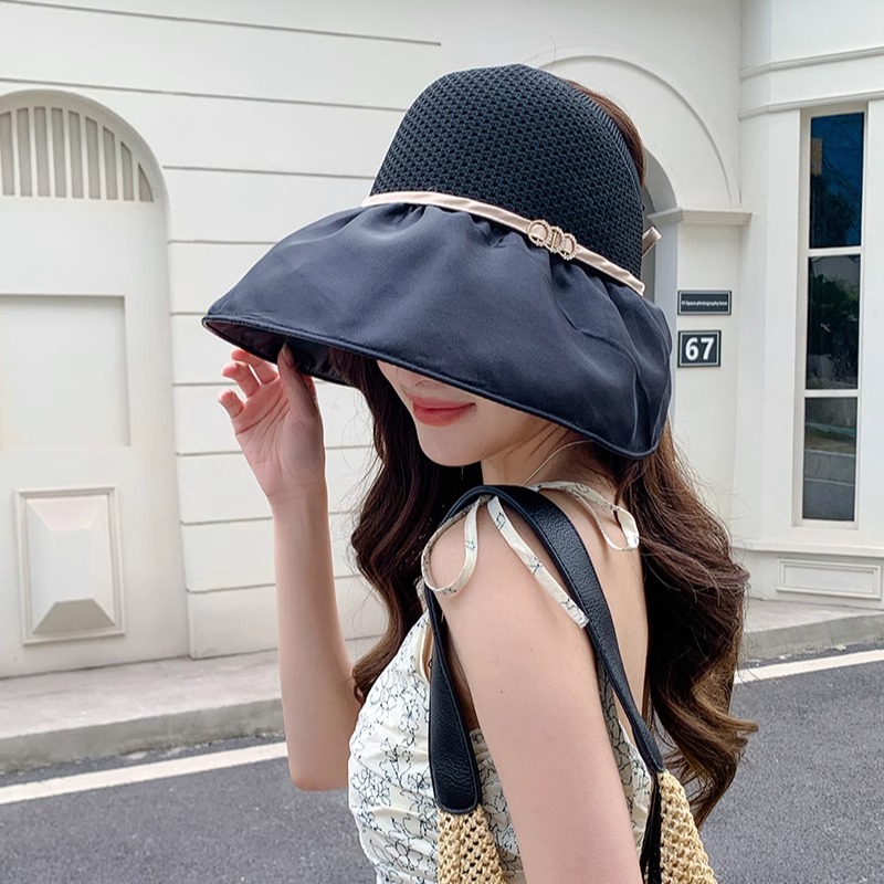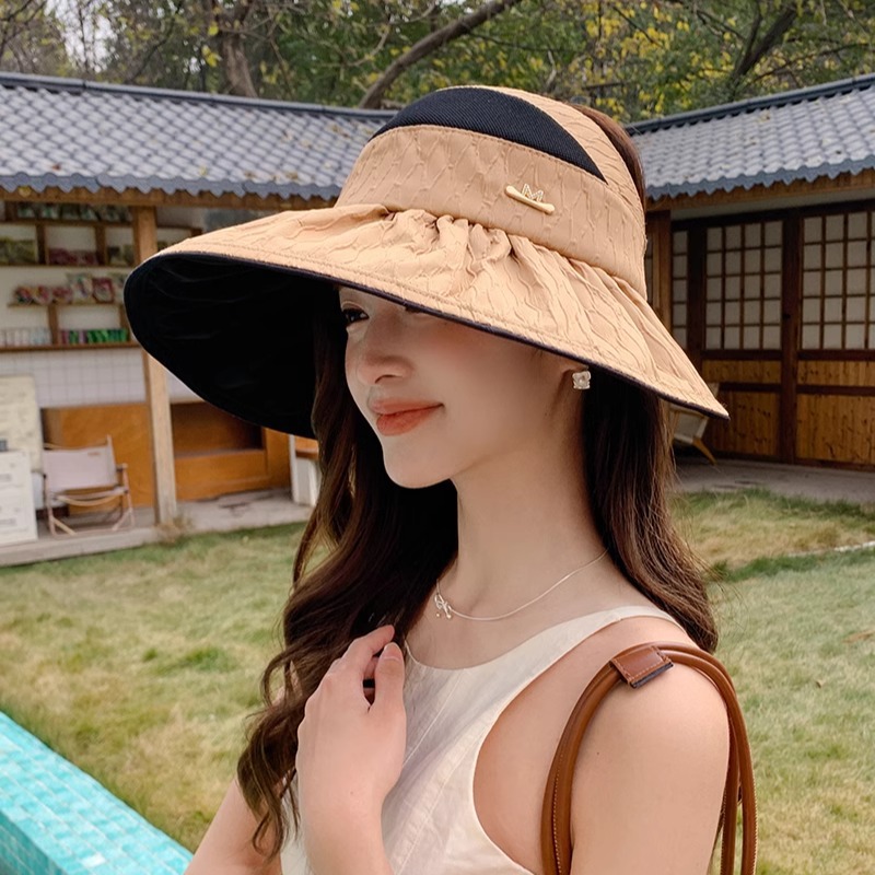 大きなつばの自転車の空の帽子の女性のタイプ2025新型の屋外の紫外線防止の日よけの帽子の夏の海辺の日よけの帽子
