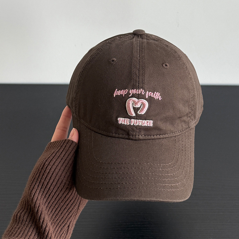 2025新型刺繍子猫野球帽女性春夏韓国版ソフトトップ顔の小さなピンクの帽子アヒルの舌帽屋外