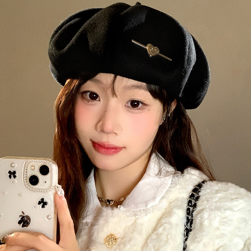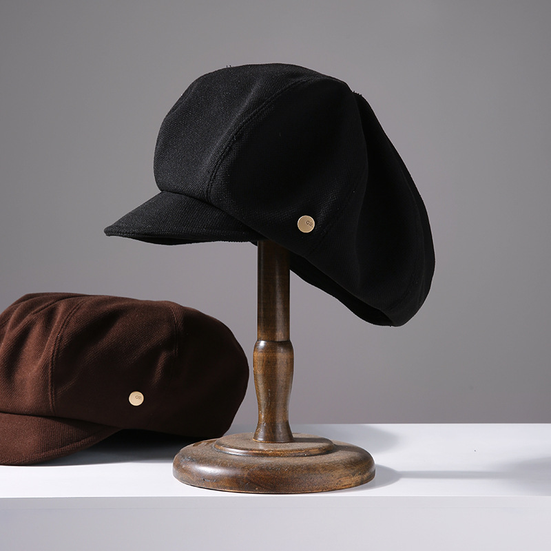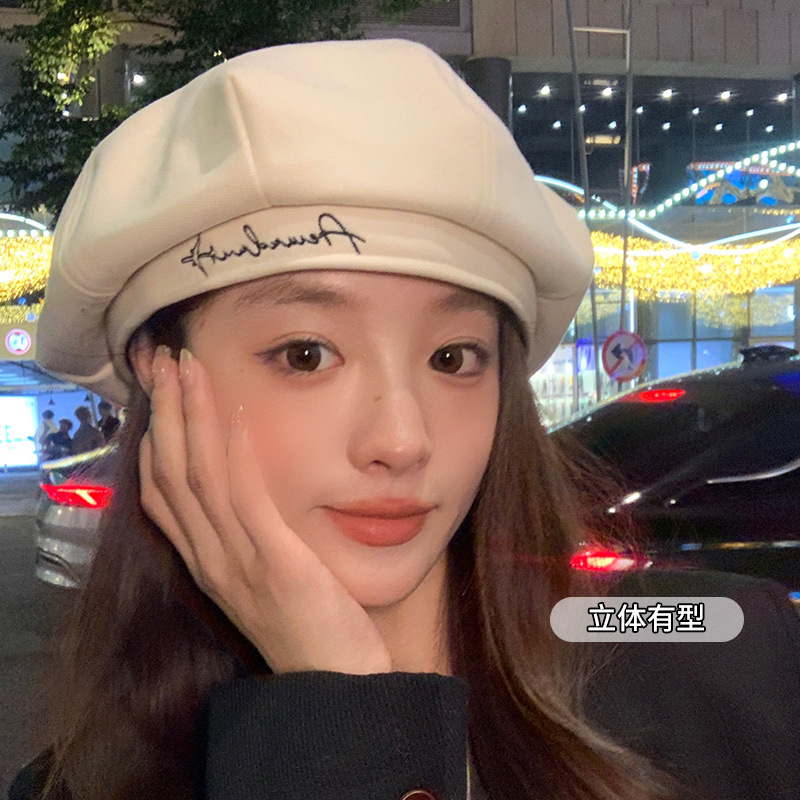 黒秋冬ベレー帽女性春夏韓国版百合顔小八角帽子日系大頭囲画家帽子