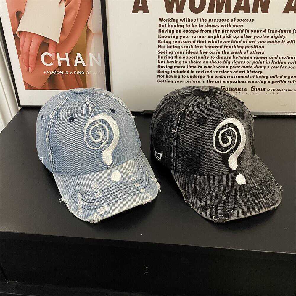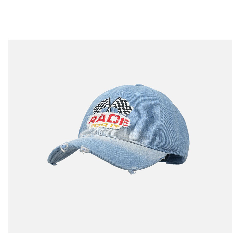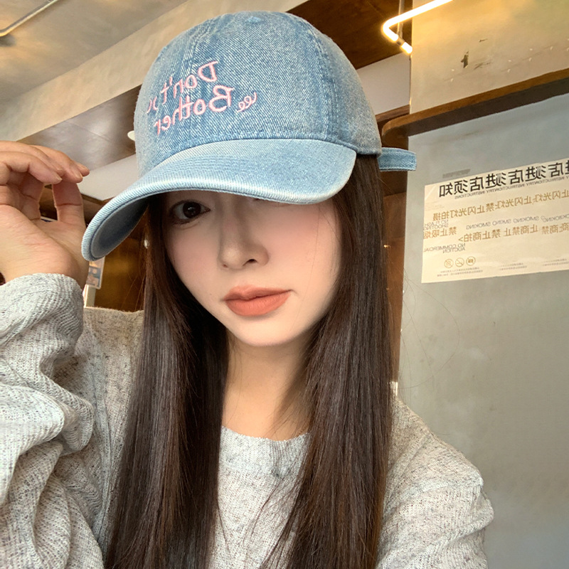 2024新型街頭個性水洗い毛の縁の柔らかいトップのデニムのアヒルの舌の帽子の百合は顔を見せて野球の帽子の子供を刺繍します。