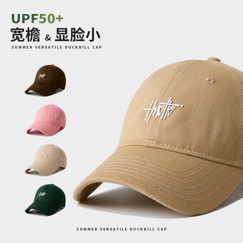 2024新型半硬頂百合鴨舌帽の女性は顔が小さくてシンプルなアルファベットのカジュアルな日よけ帽子の後ろの2つの目を見せます。