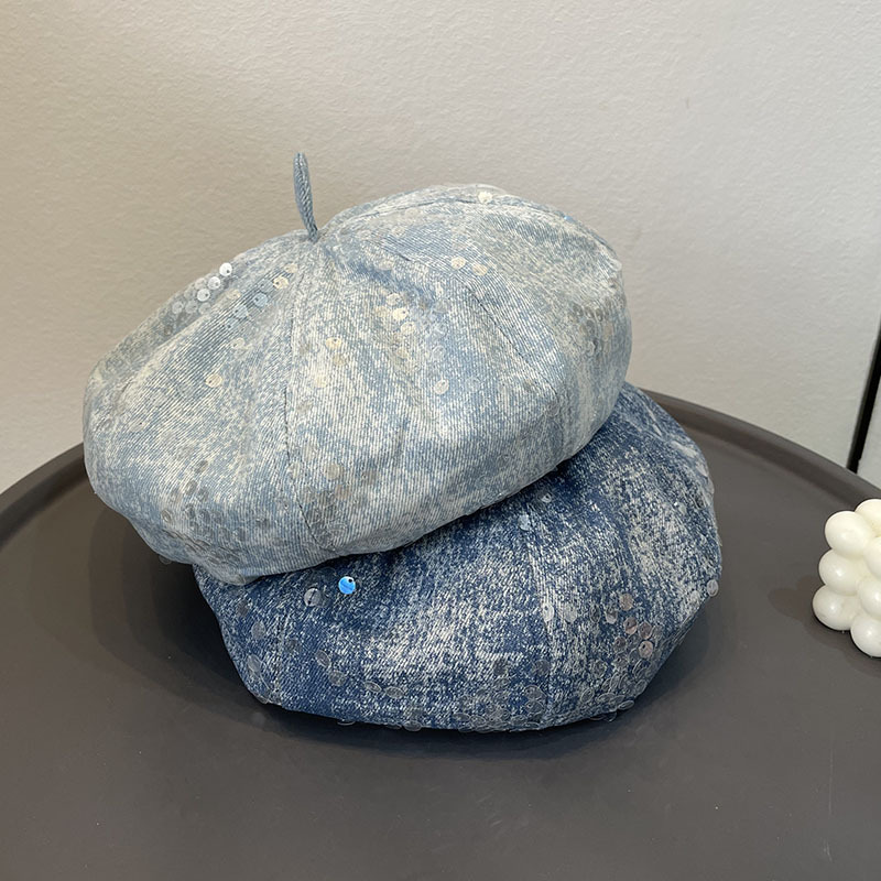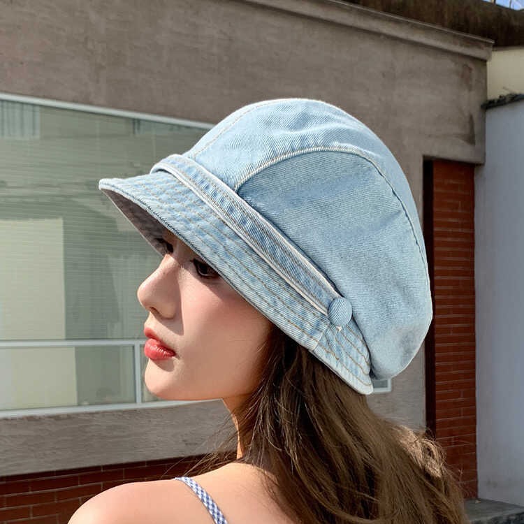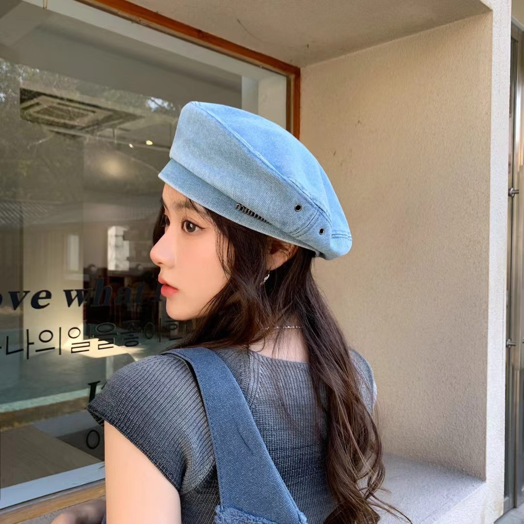 東大門の同じタイプのレトロなデニムのアヒルの舌の山の帽子の春夏の街の形のベレーの帽子の女性は顔の小さい画家の帽子を現します。