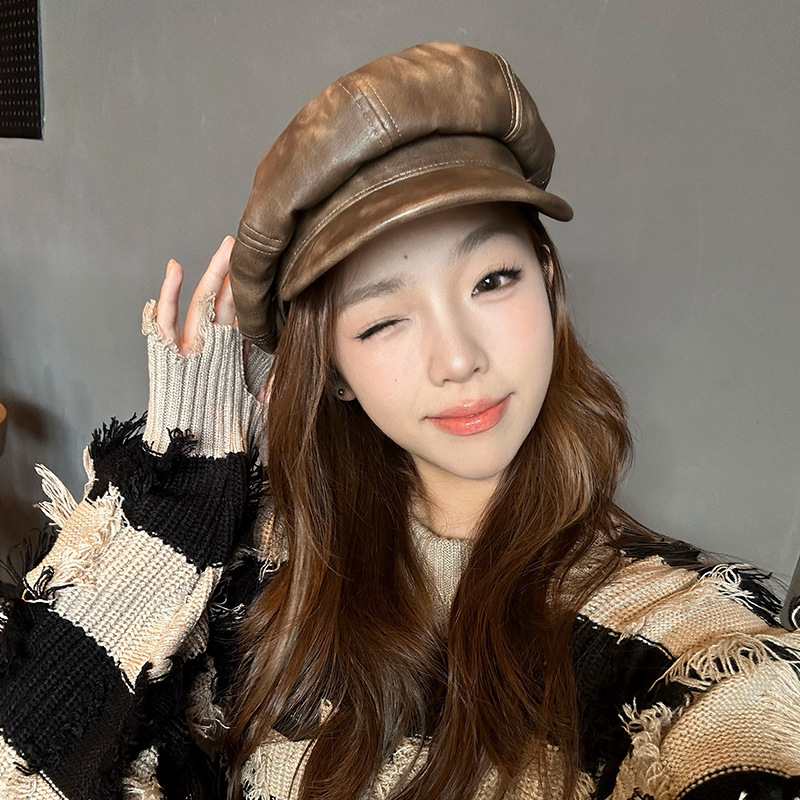 日系復古は古いカウボーイベレー帽の女性夏の薄い金の大きい頭の周りの2024の新型の顕顔の小さい八角形の画家の帽子をします。