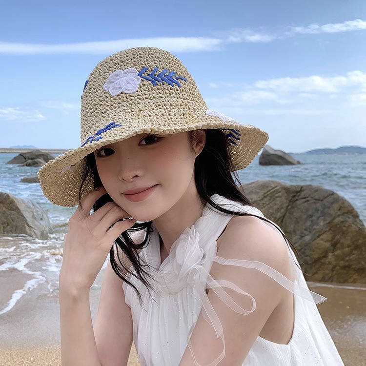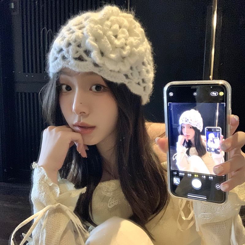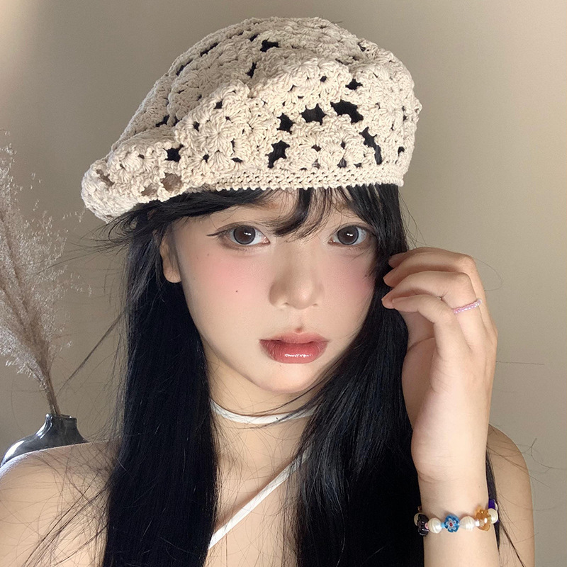 オリジナルデザイン ~ 手作りのかぎ針の花の冷たい帽子の女性の春夏の日系の漁網の透かし彫りの山の帽子の流行の包頭の帽子