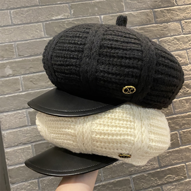 日本系のシンプルな大きい頭の周りのニットのベレー帽の女性春と秋の英倫の復古の顔の小さい八角の帽子PUの子供の帽子