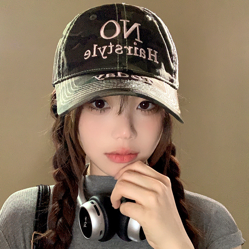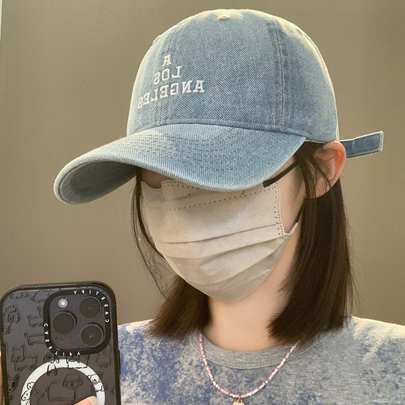 韓国版ins ~ アルファベット刺繍カウボーイ野球帽女春夏カジュアル百合深頂顕顔アヒル舌帽子