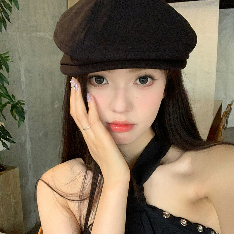 アメリカのレトロな街頭のシンプルな黒いベレー帽の女性の夏の前進帽の通気性が可愛いです。