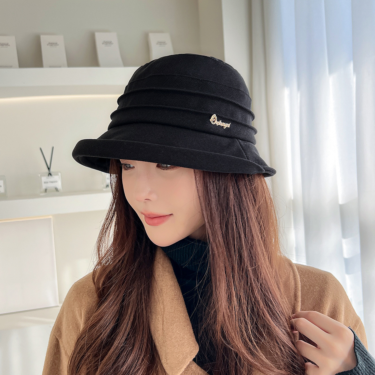 しわ風漁師帽女性秋の韓国版は日焼け止め帽子のファッションに出かけている