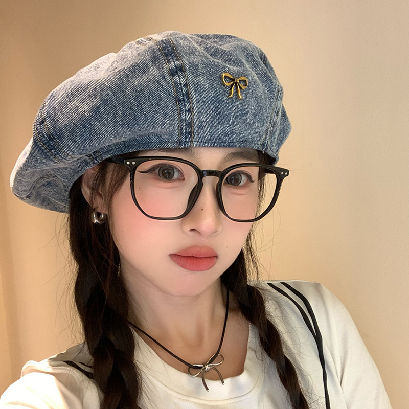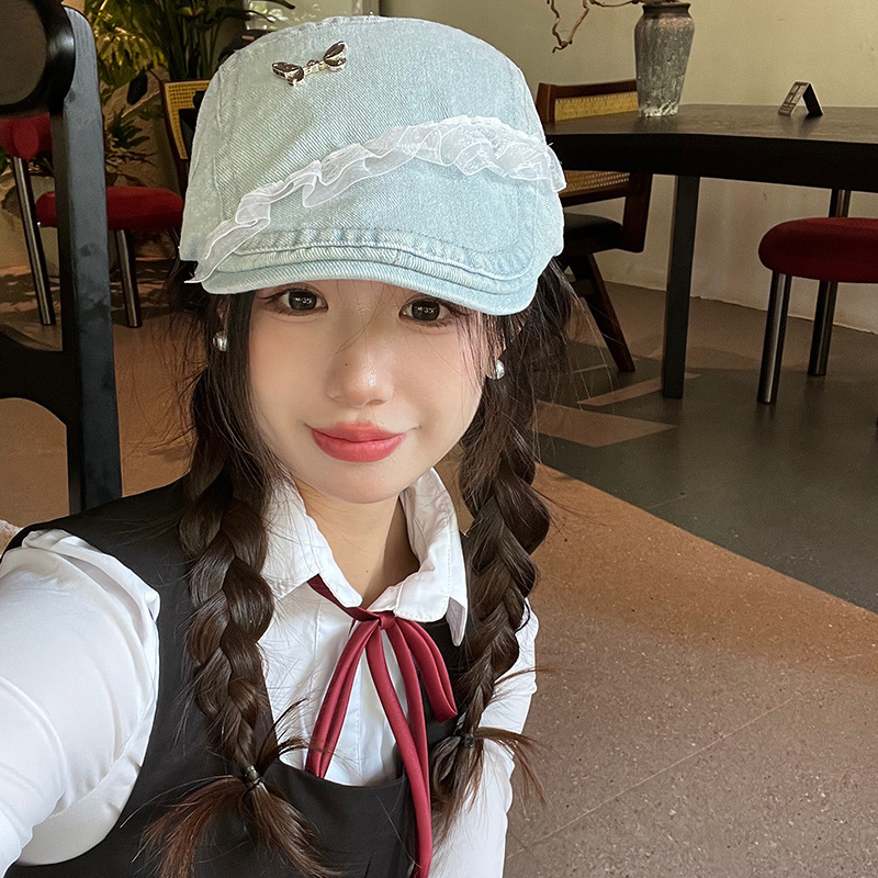 デニムのレースの前进の帽子の女性の春秋のかわいい蝶insの甘い妹のカジュアルな百合の顔のアヒルの舌のベレー帽