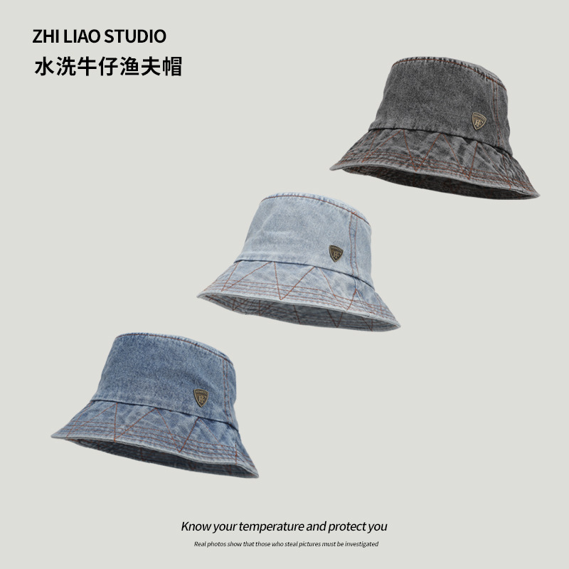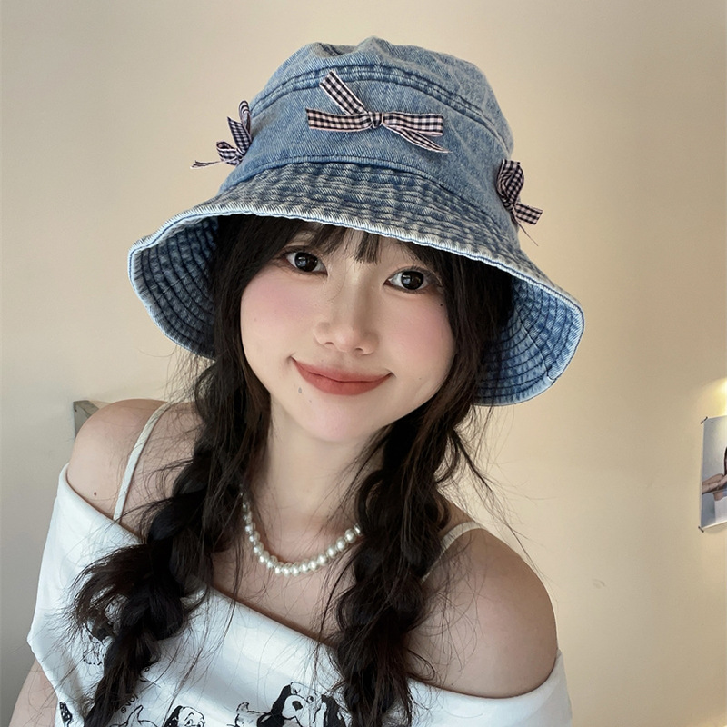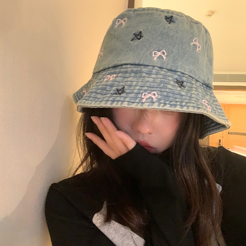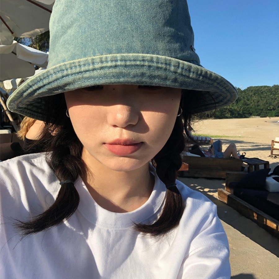 韓国風デニムフィッシャーマンハット レディース 日焼け止め 日よけ 多用途 デイリー 無地 朝の通勤用帽子 小顔効果 バケットハット