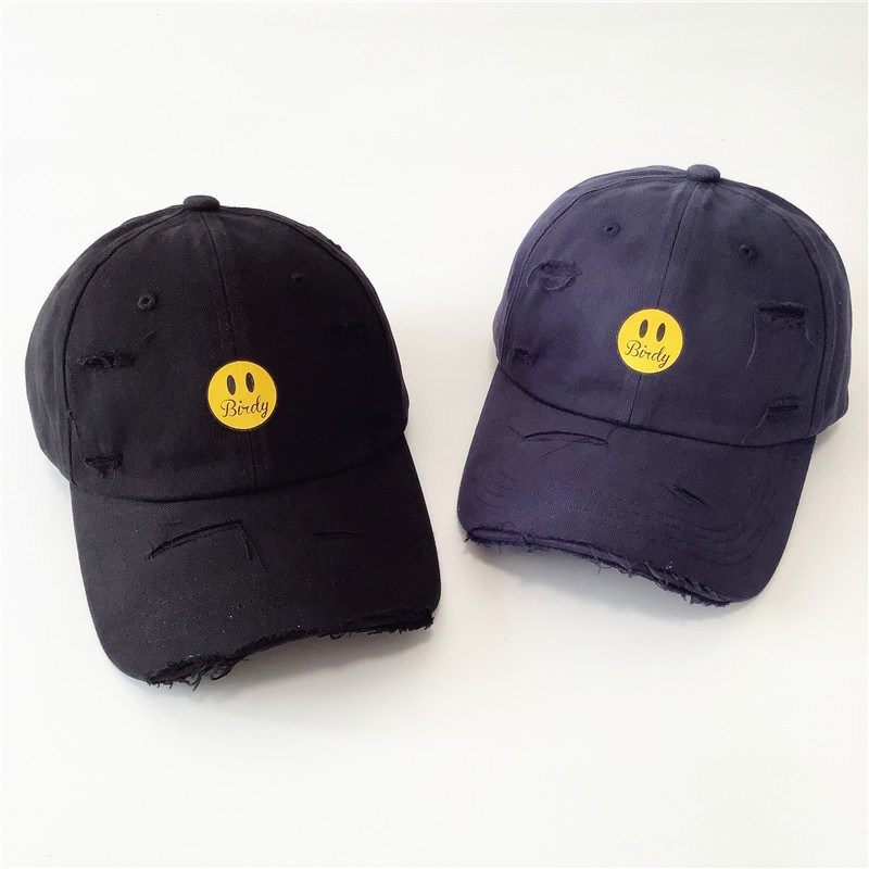 Insシンプルな黄色の笑顔印刷破れた穴のアヒルの舌の帽子の女性の春夏のファッションの野球の帽子の男性の百合の日よけの帽子